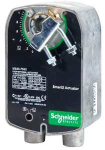 SmartX direct-coupled spring return actuator with proportional control for dampers and globe valves. Accepts 2–10VDC or 4–20mA signal with 2–10VDC feedback. Manual override via 5/32 Allen wrench.